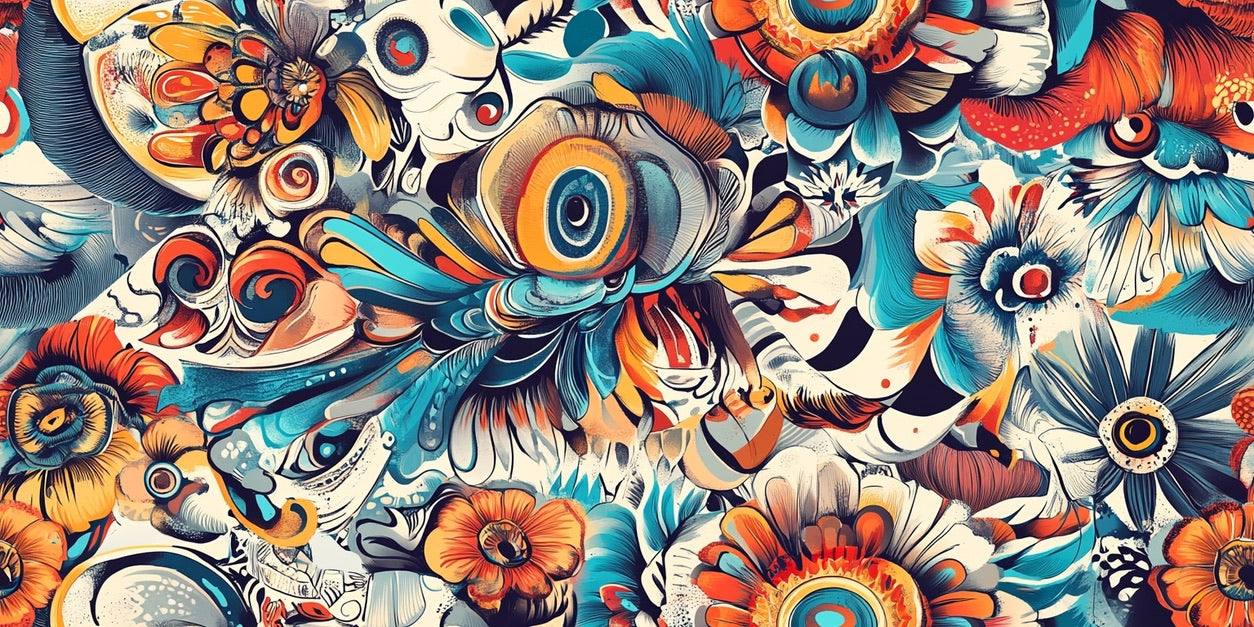 La selva como sueño: hojas, flores y criaturas fantásticas en un caleidoscopio de color.